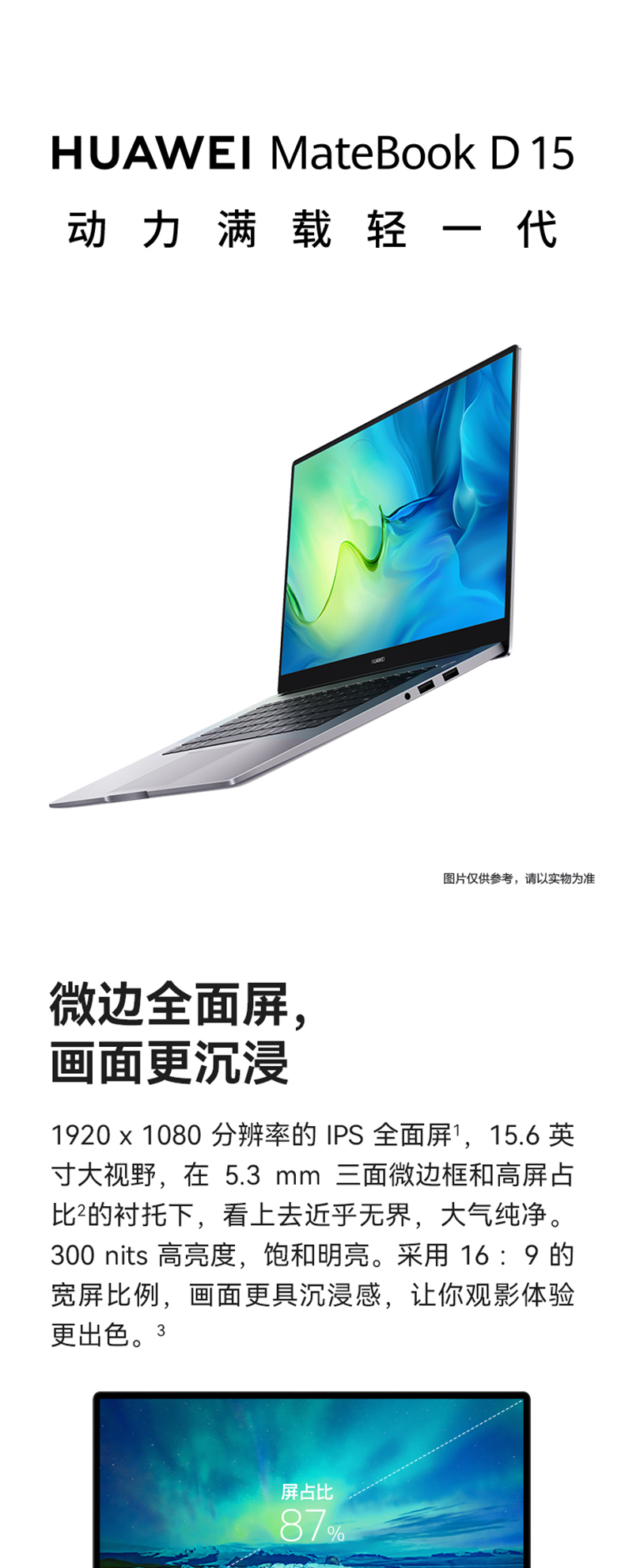 华为/HUAWEI MateBook D15 2022款 11代英特尔酷睿处理器16GB+512GB锐炬显卡笔记本电脑护眼屏